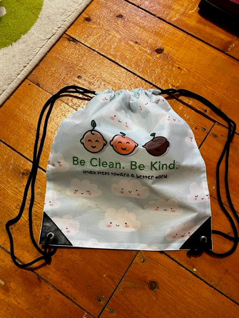 “Be Kind” sends a positive message to show kindness towards all people, animals, our planet, and promotes diversity. Children can carry these drawstring bags everywhere they go and have easy access to hygienic contents that are fun and easy to use while they learn good habits to "Be Clean”.