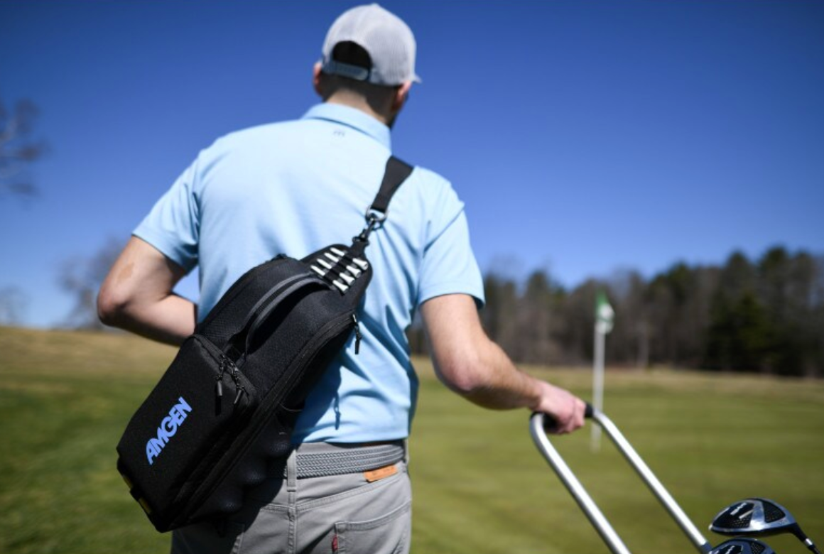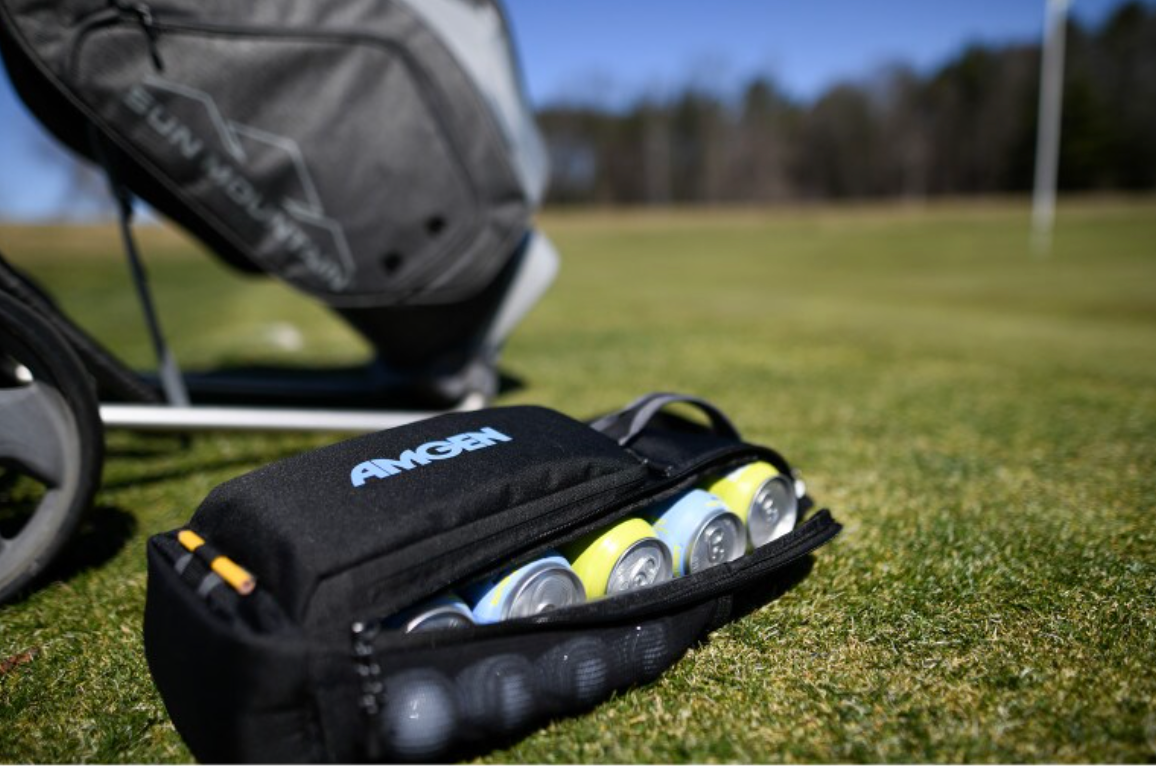 A great cooler to attach to a golf bag that stores essentials and cold drinks while playing a round of golf. It is equipped with a divot repair tool, bottle opener, open mesh pocket for golf balls and a place to slide tees for easy access. This bag can be kitted with add ons such as a couple cans of mineral water or soft drinks, a golf or cooling towel, hand sanitizer, lip balm and suntan lotion. Contact us for a quote for a customized gift pack.