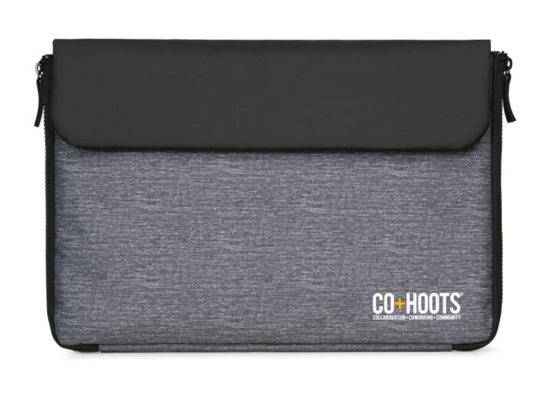 Interior features a multi-function organizer with various storage pockets ideal for storing pens, cords, flash drives, a smartphone and more!