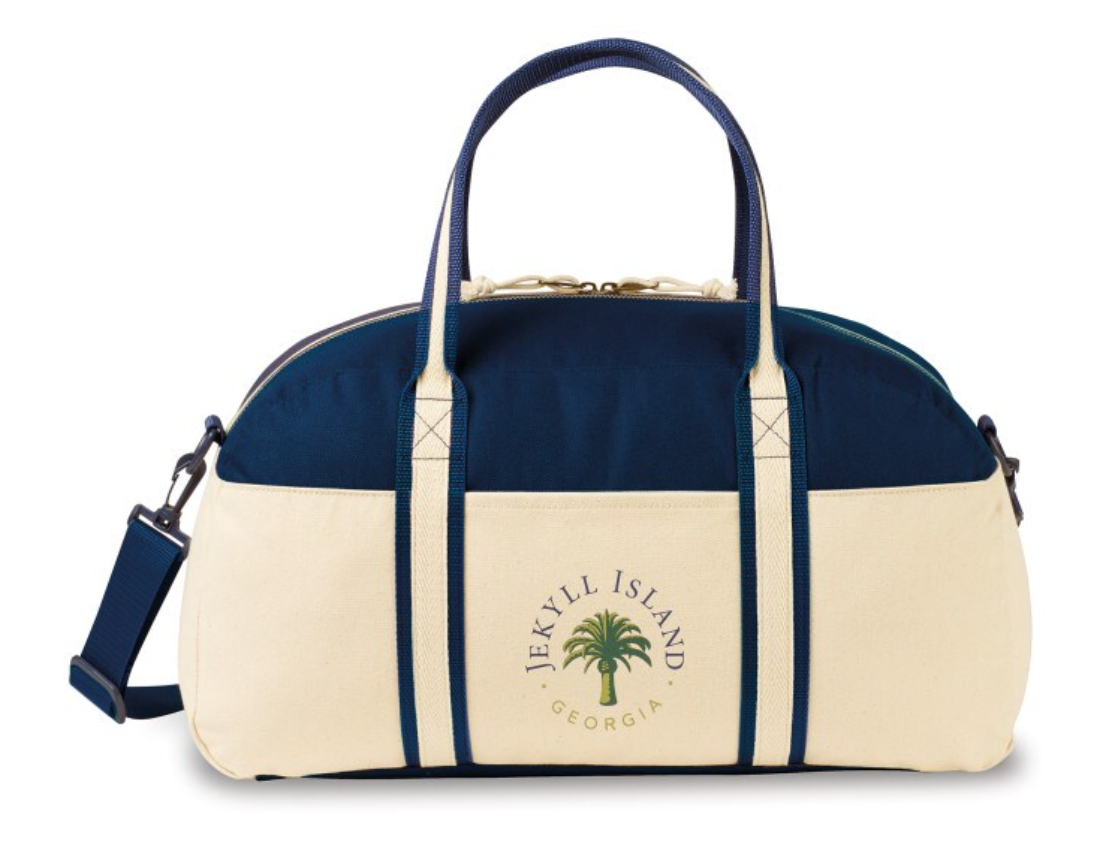 Nantucket weekender bag made of cotton with a dual zippered opening to a large main compartment.