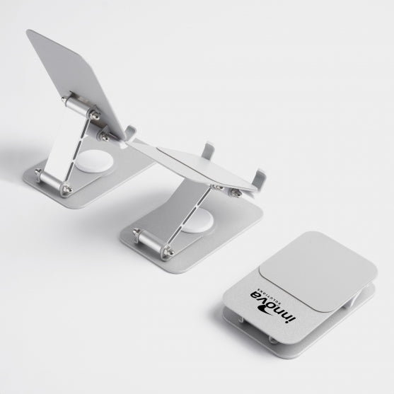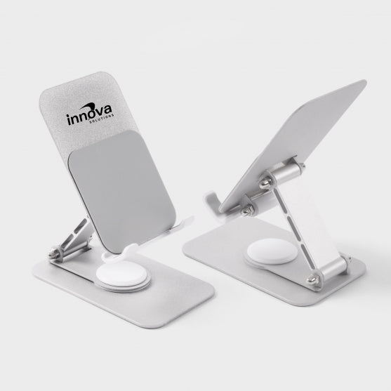 Our premium adjustable phone stand and holder, expertly crafted from durable metal and high-quality materials. With its innovative rotary base, enjoy seamless 360-degree turning to find the perfect viewing angle for your device. The stand's sturdy hinges offer exceptional stability, providing you a reliable hands-free experience for all your devices.