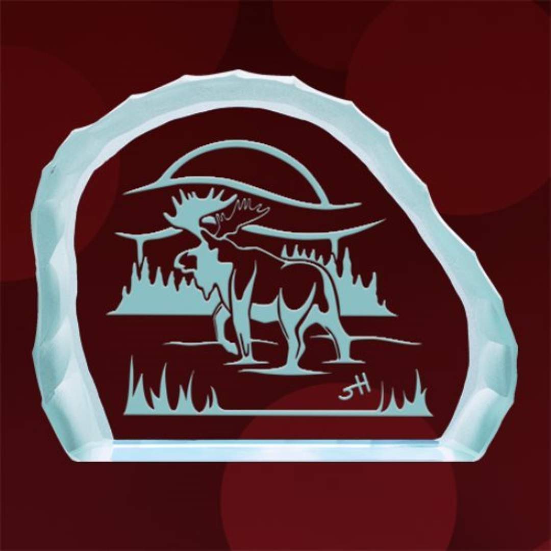 Solitary Path is one piece in the Spiritual Essence series of original artwork by artist Steven Hearns. His bold geometric abstractions of wildlife are reflections of aboriginal traditions and values. This freestanding ¾” jade glass piece is approximately 3½” wide with back edges chipped and frosted. It is accompanied by a romance card containing notes on the artist and thematic comments on the artwork. Also available in a larger version, approximately 6½” wide, on a 3/8” beveled jade base. Contact Us for the larger version with a base.
