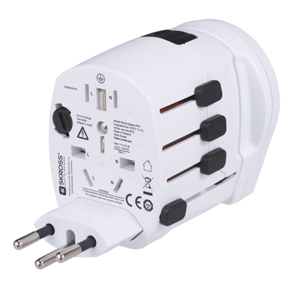 Switzerland-based SKROSS, the world's leading manufacturer of premium travel adapters, presents its most powerful charging solution yet: the SKROSS World Travel Adapter PRO World & USB. This compact three-pole travel plug features an integrated USB charger and works in more than 150 countries, enabling you to simultaneously charge USB devices while connecting earthed devices like laptops and hair dryers — anywhere in the world.