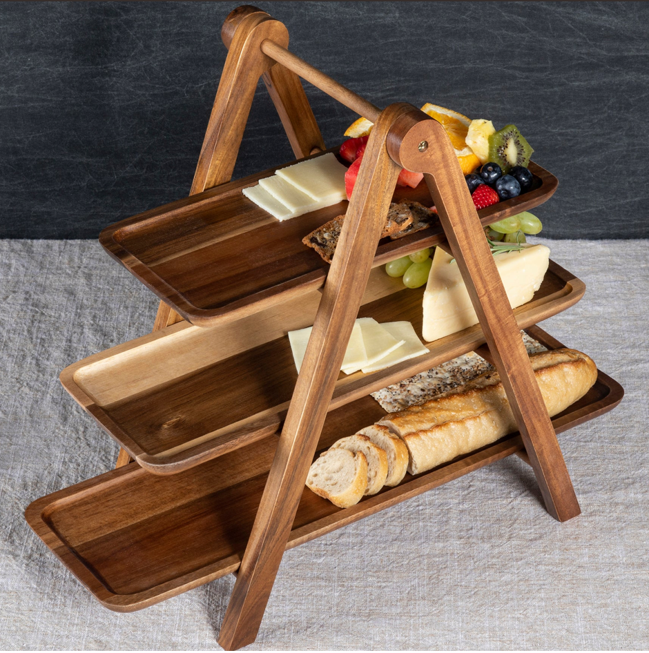 At once space-saving and stylish, the Serving Ladder is a 3-tiered serving station with small, medium, and large removable trays set on a collapsible ladder.