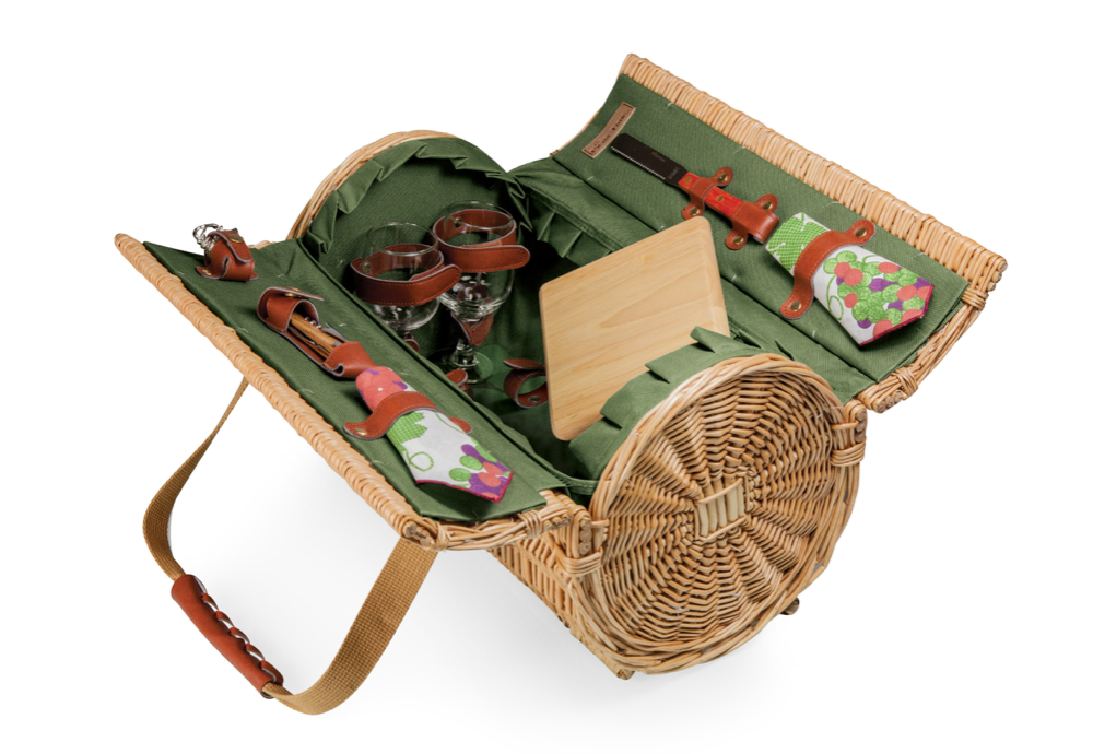 The Verona picnic basket is one of those things that makes you get into the car, pop this beautiful basket in the back seat and spend the day in wine country with the best cheese, bread and olives. It is the ideal picnic basket for the day equipped with everything you need for a Grace Kelly & Cary Grant afternoon. It's okay to pretend! The Verona fits into a small trunk.
